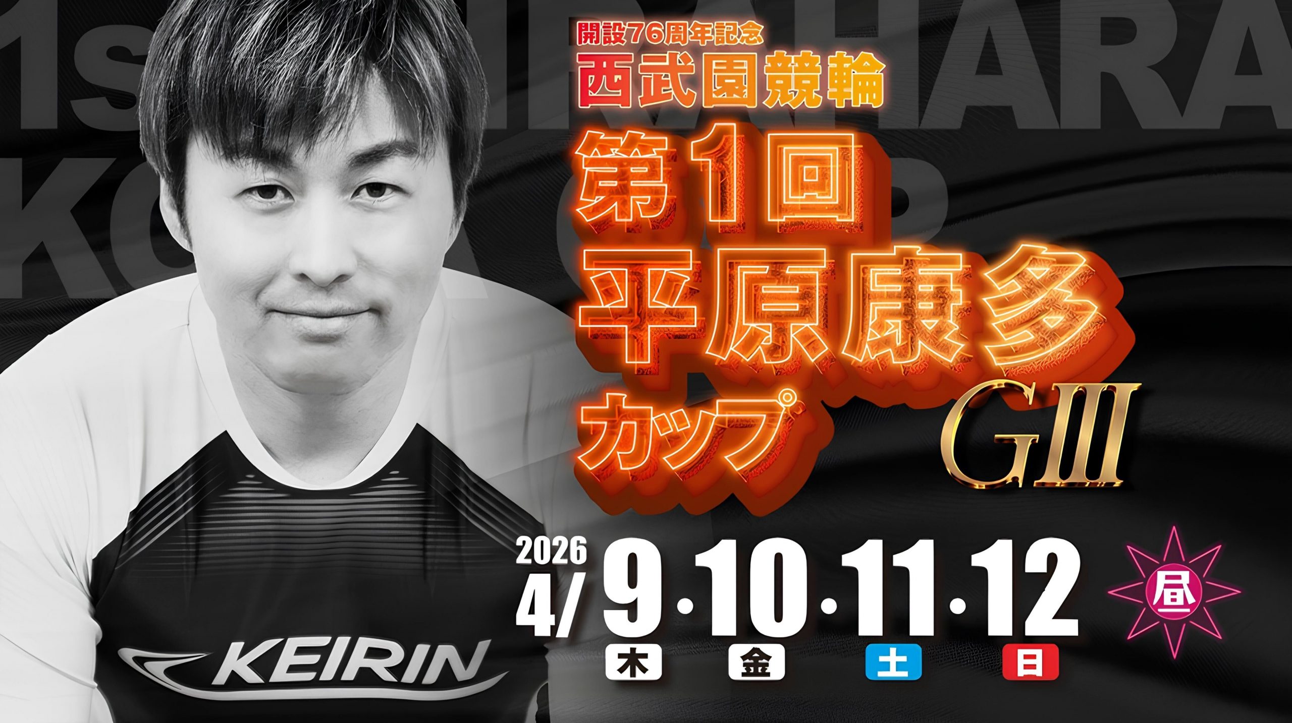 開設76周年記念西武園競輪「第1回平原康多カップ」(GⅢ)が9日から12日まで4日間の日程で開催される。主な出場予定選手は別表の通りで、中心には真杉匠、吉田拓矢の関東ゴールデンタッグを推す。直前の伊東記念で完全優勝を飾った古性優作、阿部拓真とS級S班は4人が出場。埼玉勢は森田優弥、武藤龍生らがV候補に名を連ね、地元が誇るレジェンド・平原氏の冠がついた初回大会を盛り上げる。